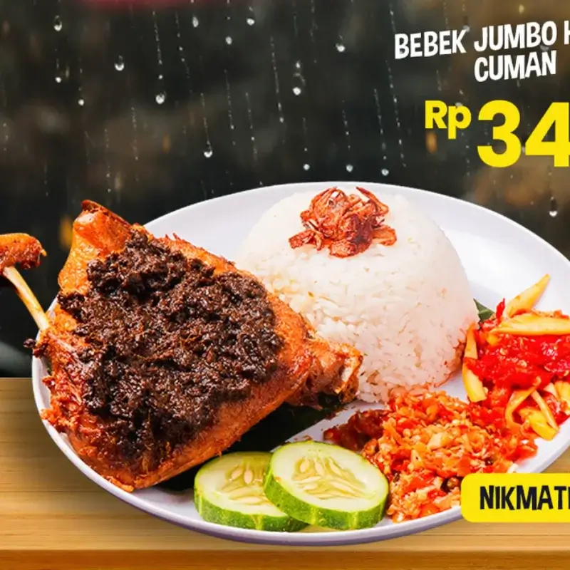 Daging bebeknya empuk tanpa bau amis, dan disajikan dengan lalapan segar serta nasi hangat. Banyak pengunjung mengatakan bahwa tulang bebeknya pun renyah hingga bisa dimakan.