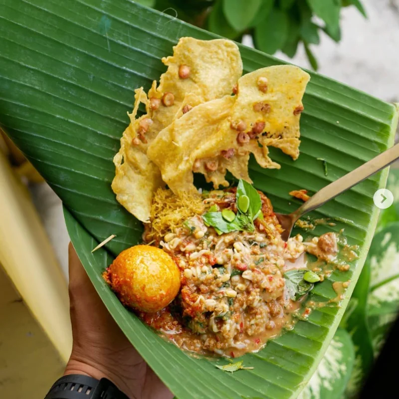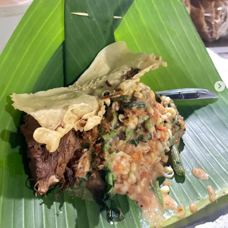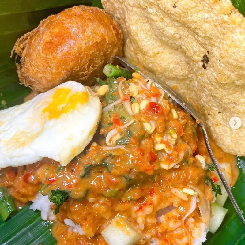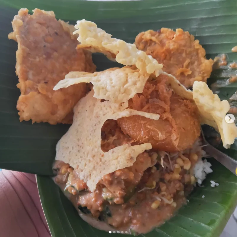 Ciri khasnya adalah penyajian menggunakan pincuk daun pisang, sambal kacang gurih yang tidak terlalu pedas, serta tambahan serundeng dan rempeyek. Harganya pun terjangkau untuk ukuran warung legendaris, sekitar Rp 9.000 per porsi. Suasana warungnya bersih dan ramah, menjadikan tempat ini favorit warga lokal maupun wisatawan.