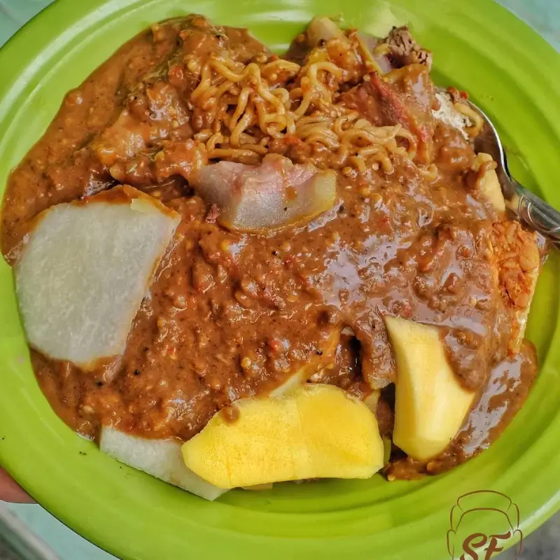Ini dia rujak cingur yang viral di Surabaya karena porsinya besar dengan harga yang cukup terjangkau. Berdiri sejak 1990-an, sajian rujak cingur ini diracik oleh Bu Sulihah dengan bumbu kacang dan petis yang khas. Isian lengkap mulai dari tahu, tempe, lontong, tauge, kangkung, hingga buah segar membuat satu porsi terasa sangat mengenyangkan.